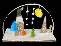 Peinture, collage et jeux de textures pour composer un paysage calme et poétique… Flocons, forêts, animaux et textures toutes douces. Un moment créatif tout en douceur.